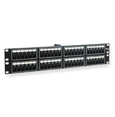 ATEK Communications carries 48 Port Telco Patch Panel, 48 Port Telco Patch Panels, ICC 48 Port Telco Patch Panels, Signamax 48 Port Telco Patch Panels from ICC, Signamax and several other 48port telco patch panel manufacturers.Category 3 Modular-Telco Patch Panels are available in 24, 48 and 96-port sizes and support RJ-11 2-wire, RJ-11 4-wire, RJ-45 2 wire and RJ-45 4 wire USOC wiring systems. Each 50 position Telco connector is provided with both Velcro strain relief brackets and hex sockets to secure 25 pair cables with either 90 degree or 180 degree cable exit. Panels feature a write-on surface to provide port identification on both the front and rear termination areas. Panels include an integrated cable management/strain relief system for improved routing and strain relief requirements. We stock a complete line of 24 Port Telco Patch Panel, 24 Port Telco Patch Panels, ICC 24 Port Telco Patch Panels and Signamax 24 Port Telco Patch Panel. We also carry USOC patch panels and a supplier of telco patch panels and has in stock hundreds of quality Voice Data Patch Panels, USOC Patch Panels, Telco Patch Panels,CAT 5e patch panels, ICC patch panels,blank patch panels and CAT 6 and telco patch panels in stock including the entire line of ICC telco patch panels. We have a full array of CAT 5e patch panels, CAT 6 patch panels in 12 port patch panels, 24 port patch panels, 48 port patch panels and more configurations. ATEK Communicationsoffers quality and affordable Patch Panel Cross-Connect Solutions (CXS) to meet every requirement - from a consolidation point, to a complete telecommunications room. Our Hinged patch panel is designed to allow for front cable access and 110 punch down, while rack mounted. The panel comes equipped with a cable management interbay panel that allows the panel to fold down for punch down and then folds back into place. Includes mounting screws. All our patch panels Exceeds TIA/EIA CAT 5e standards. Includes mounting screws. We carry telco patch panels from ICC and Signamax.