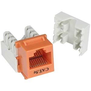 Cat.5E RJ-45 keystone jack is 8-position 8-conductor (8P8C) and designed for computer networking. It is engineered to provide superior performance and reliability, supporting up to Gigabit Ethernet applications. The advanced printed circuit board design is tuned to provide optimum signal quality with maximum headroom, allowing it to exceed TIA/EIA Category 5e performance standards.