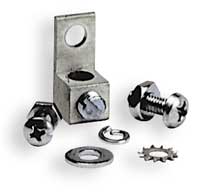 The kit includes a universal grounding terminal with all the necessary mounting hardware. The kit can be used to terminate grounding cables to panels and racks.