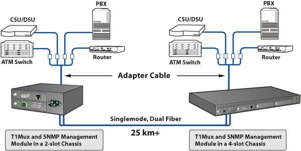 powerful advantage of the T1 Fiber Mux module is its interoperability with other