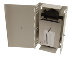 Wall mount single outer door compact distribution unit with one 1120-SSTA splice tray capacity. Off White, Steel |