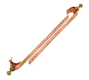 Electrically bonds AWG10-14 ground wire to water pipes and power service masts to provide a low-resistance ground connection