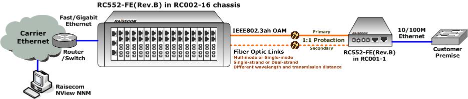 Raisecom- RC552-FE- 10/100M OAM Media Converter with 1:1 Uplink Protection- Ethernet over Fiber- Ethernet over PDH- Ethernet over SDH- Ethernet over Copper