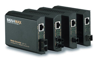 Signamax provides media conversion solutions that support data, voice, video and image transport over a wide variety of transmission media. These products convert a wide variety of data - from serial RS-232 through Standard, Fast, Gigabit Ethernet and SONET/SDH protocols. Conversions from twisted-pair copper cable, coaxial cable, multimode fiber and singlemode fiber, to other types of cable are all possible with the wide array of solutions from Signamax Connectivity Systems.