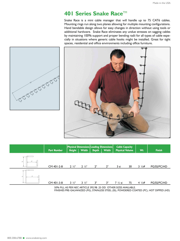 Snake Tray is the fastest installing, most cost-effective cable support system available today. Its patented hand bendable design delivers advantages found nowhere else. Unlike traditional cable tray products, Snake Tray requires no cutting and no clipping allowing installers to create turns in 10 seconds – far less than the 15 minutes per turn which is typical with wire mesh cable tray products. Available in a wide array of styles, Snake Tray’s hand bendable design combined with our built-in mounting hardware installs faster delivering a cost-savings advantage over any other cable tray system in today’s market.