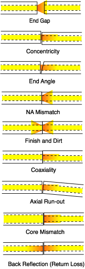 and splice loss is caused by a number of factors. Loss is minimized when the two