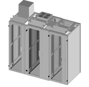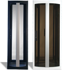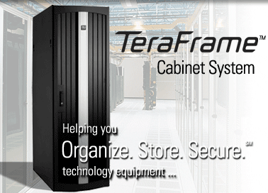 Cabinets store computer and data storage equipment that generate significant amounts of heat. Most rack-mount equipment draws cool air in the front and expels hot air from the back. The Enhanced SteelFrame Cabinet addresses front to rear air flow and maximizes the benefits of existing cool air with integral air dams and perforated front doors. Two cabinets are available: the Low kW Cabinet, for heat loads less than 5 kW and the High kW Cabinet. The High kW Cabinet includes a 1,000 CFM Fan Kit to further cool the cabinet. An External Cable Manager is also available for exceptional cable management.