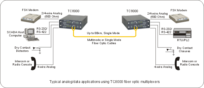 data Fiber Optic Multiplexer that extends 600 Ohm audio and data