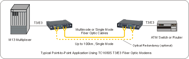T3/E3 connectivity applications up to distances of 100km. Typical applications
