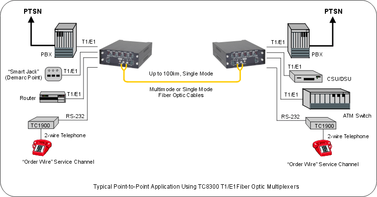 TC8300 is a remarkably flexible one-to-four channel T1/E1 Fiber Optic Multiplexer