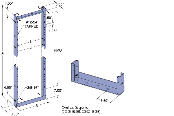 Steel Ceiling Mounted Relay Racks- Available in 19" and 23"