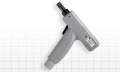 Battery operated punchdown tool, ergonomically designed for operator safety and efficiency.