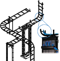 Ladder Racks- More Info Cable Management Racks combine the features of a high quality relay rack, as well as effective cable routing and raceway facilities, all in one complete unit. All aluminum cable management rack allows for the mounting of a wide variety of 19 inch wide patch panels, hubs, switches, and related rack mount equipment. The rack is supplied with cable hangers, cable ties and generous provisions for organizing incoming cables for termination with effective patch cord management on the front. Racks are shipped with all assembly required plus an accessory pack that includes 20 cable ties, 16 cable hangers, 40 cuphead mounting screws, and grommeting for cable routing cutouts.