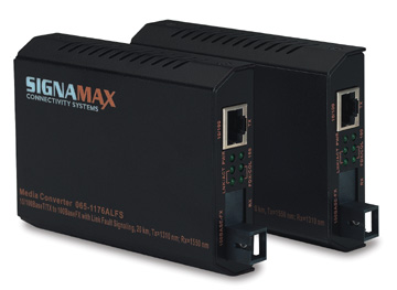 Signamax provides media conversion solutions that support data, voice, video and image transport over a wide variety of transmission media. These products convert a wide variety of data — from serial RS-232 through Standard, Fast, Gigabit Ethernet and SONET/SDH protocols. Conversions from twisted-pair copper cable, coaxial cable, multimode fiber and singlemode fiber, to other types of cable are all possible with the wide array of solutions from Signamax Connectivity Systems.