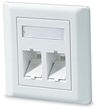 Angled outlets are designed for creating work area connections based on popular European outlet mounting format (85 x 85 mm). The two-piece design hides slots and screw heads under a decorative faceplate allowing a clean, elegant solution suitable for any ap-plication. Clear plastic label covers provide an easy-to-read labeling solution. Integrated hinged shutters protect jacks from dust and other solid agents' penetration in unmated state. Angled jack mounting helps to eliminate protrusion and compensate the weight of connected equipment cord preventing its damage due to tension and excessive bend radius. Snap-on decorative faceplate does not require tools for replacement and can be installed after all office fit-out works are finished. Outlets are compatible with all Signamax UTP and fiber keystone jacks.