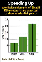 I expect the price of gigabit Ethernet to fall dramatically in 2002. I think we will see the price of gigabit Ethernet switched fall to about $40 per port by the end of the year and the price of network cards to fall to around $35 per NIC. I think we will also see gigabit Ethernet incorporated into broadband routers by companies trying to stand out from their competition in this over-crowded router market.