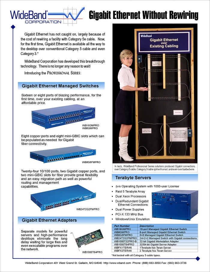 Gigabit Ethernet Speeds Without Rewiring - WideBand has been a leading manufacturer