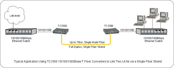 The TC3300R/S is typically used to interconnect 10/100/1000Mbps switching hubs, workstations or any other Ethernet, Fast Ethernet and Gigabit Ethernet compliant device at distances up to 100km.