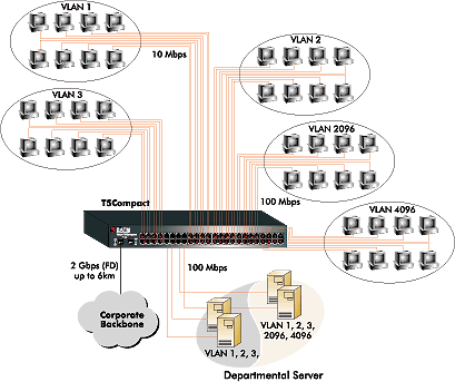 Dense 10/100 Mbps copper configuration provides high capacity in