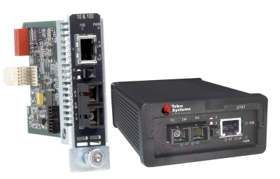 The Metrobility® R141 line card and 2141 standalone are transparent two-port, copper-to-fiber media converters that can be set to either 10Mbps on both ports or 100Mbps on both ports. The R141 line card is support in all Metrobility chassis options. When configured with a management card (R502-M), it may be locally managed through a web browser or with NetBeacon® ESP Element Manager.